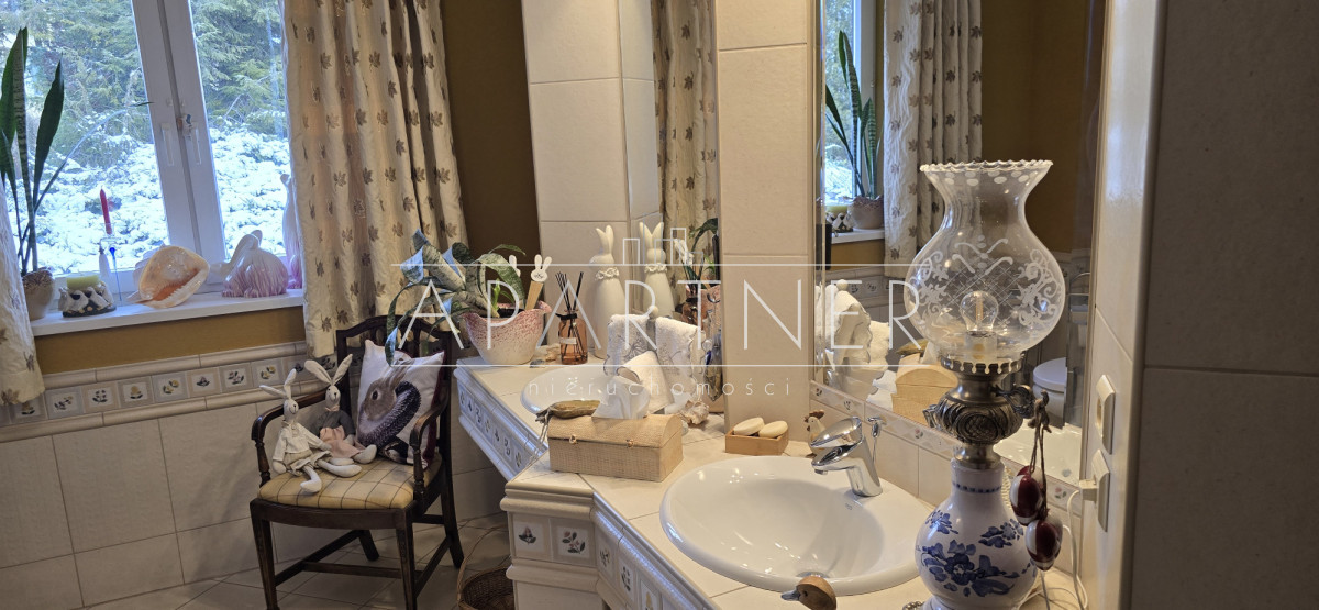 Działka ma powierzchnię niemal 5788 m2 - w miejscowym planie przeznaczona częściowo pod zabudowę mieszkaniową - istnieje możliwość wybudowania drugiego domu z odrębnym wejściem