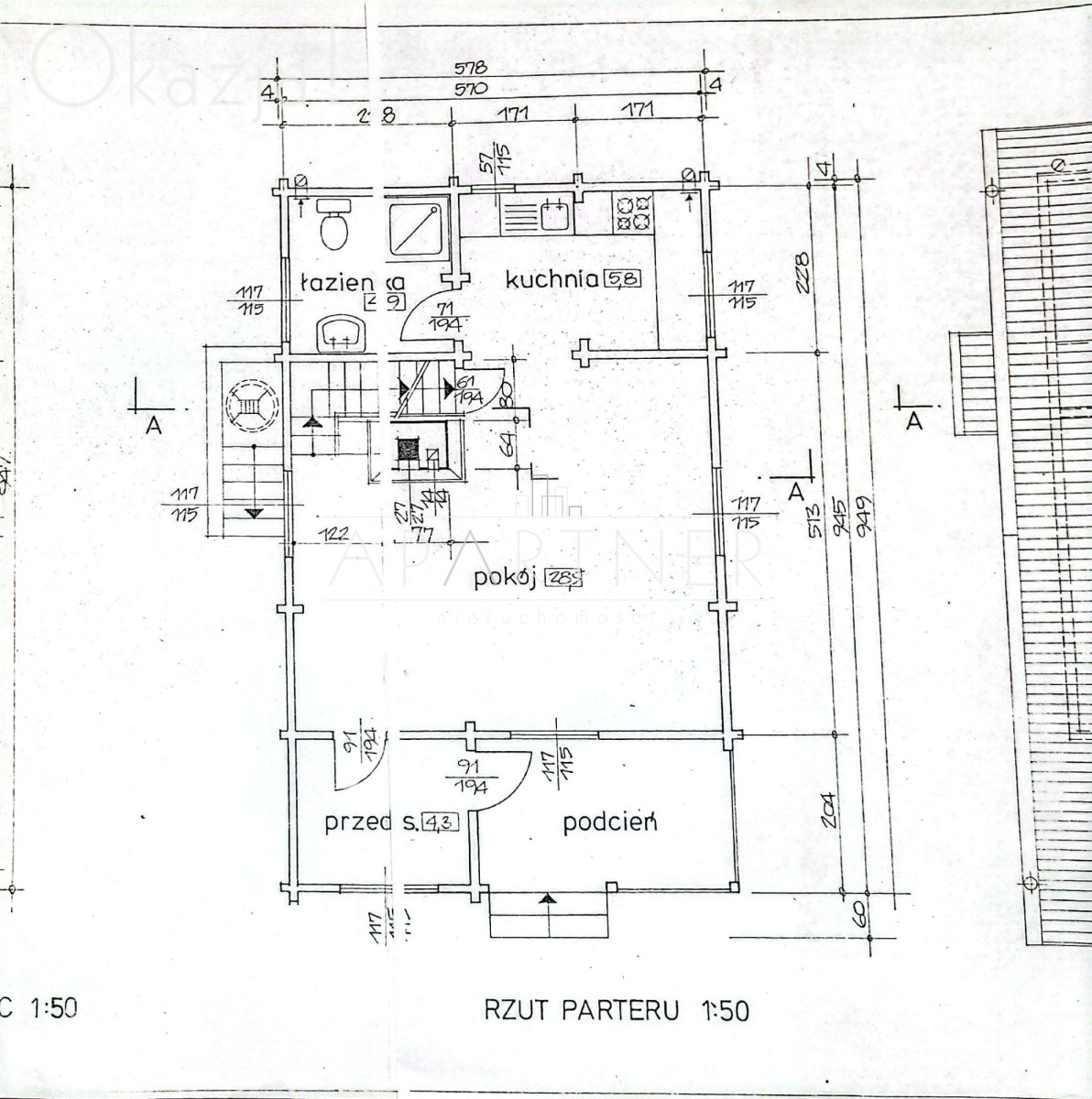 - wydzielona kuchnią 5,8m2 z oknem,